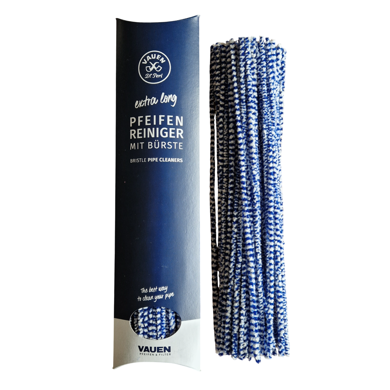 The extra-long pipe cleaners from VAUEN provide exceptionally thorough and convenient cleaning for your pipe. Thanks to their strong cleaning performance, they reliably remove residue, moisture, and tobacco deposits – even in deep or hard-to-reach areas of the pipe channel.